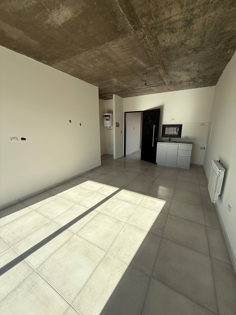 Detalles de construcción : Calefacción por radiadores por caldera general ; termotanque y kitchenette eléctrica ; pisos porcelanico ; divisiones internar con placa de yeso con aislación ; cielorraso de hormigón rustico ; aberturas de aluminio con dvh